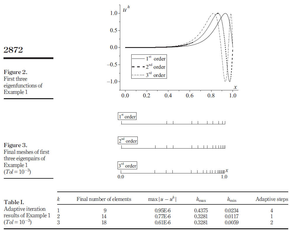 The purpose of this research is to present a numerically adaptive finite element (FE) method for accurate, efficient and reliable eigensolutions of regular second- and fourth-order Sturm每Liouville (SL) problems with variable coefficients. After the conventional FE solution for an eigenpair (i.e. eigenvalue and eigenfunction) of a particular order has been obtained on a given mesh, a novel strategy is introduced, in which the FE solution of the eigenproblem is equivalently viewed as the FE solution of an associated linear problem. This strategy allows the element energy projection (EEP) technique for linear problems to calculate the super-convergent FE solutions for eigenfunctions anywhere on any element. These EEP super-convergent solutions are used to estimate the FE solution errors and to guide mesh refinements, until the accuracy matches user-preset error tolerance on both eigenvalues and eigenfunctions. Numerical results for a number of representative and challenging SL problems are presented to demonstrate the effectiveness, efficiency, accuracy and reliability of the proposed method. Research limitations/implications 每 The method is limited to regular SL problems, but it can also solve some singular SL problems in an indirect way. Comprehensive utilization of the EEP technique yields a simple, efficient and reliable adaptive FE procedure that finds sufficiently fine meshes for preset error tolerances on eigenvalues and eigenfunctions to be achieved, even on problems which proved troublesome to competing methods. The method can readily be extended to vector SL problems.